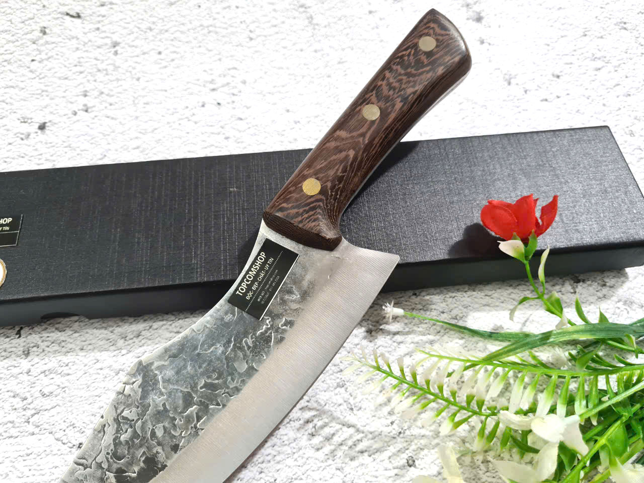 Tên sản phẩm: Dao Phúc Sen, Dao Thái Kiểu 03 Cán Gỗ Cẩm - Chức năng: chuyên thái thịt, rau củ - Chất liệu: 100% thép nhíp ô tô được lựa chọn và kiểm duyệt