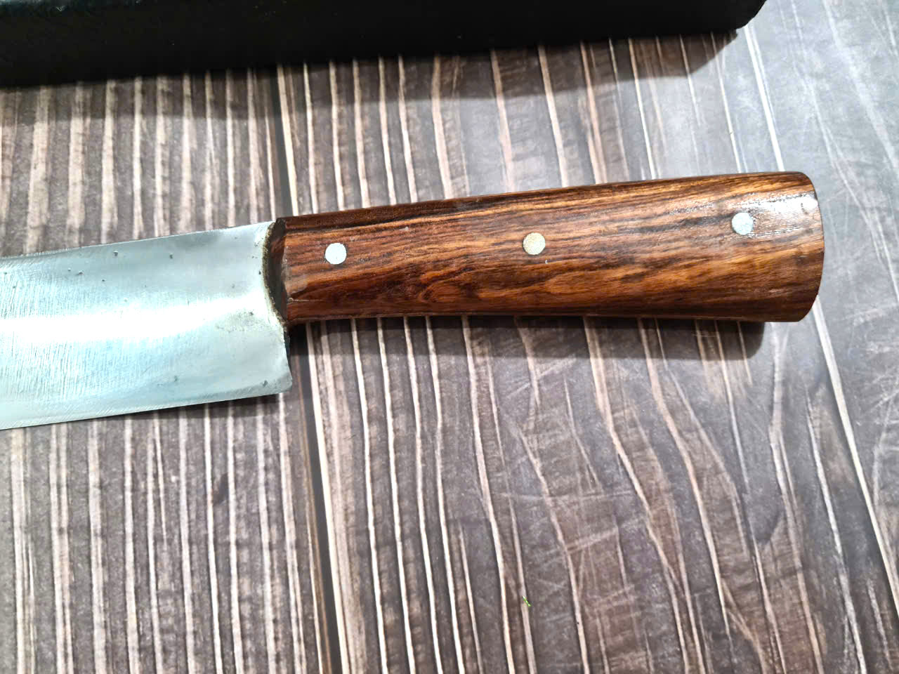 - Chức năng: thái thịt, rau củ quả - Kích thước: Lưỡi: 17cm, cán: 12cm, rộng: 5cm, dầy: 1ly, trọng lượng: 200g - Cán : Gỗ cẩm chỉ, Chốt, Khâu ĐỒNG ĐỎ , keo liên
