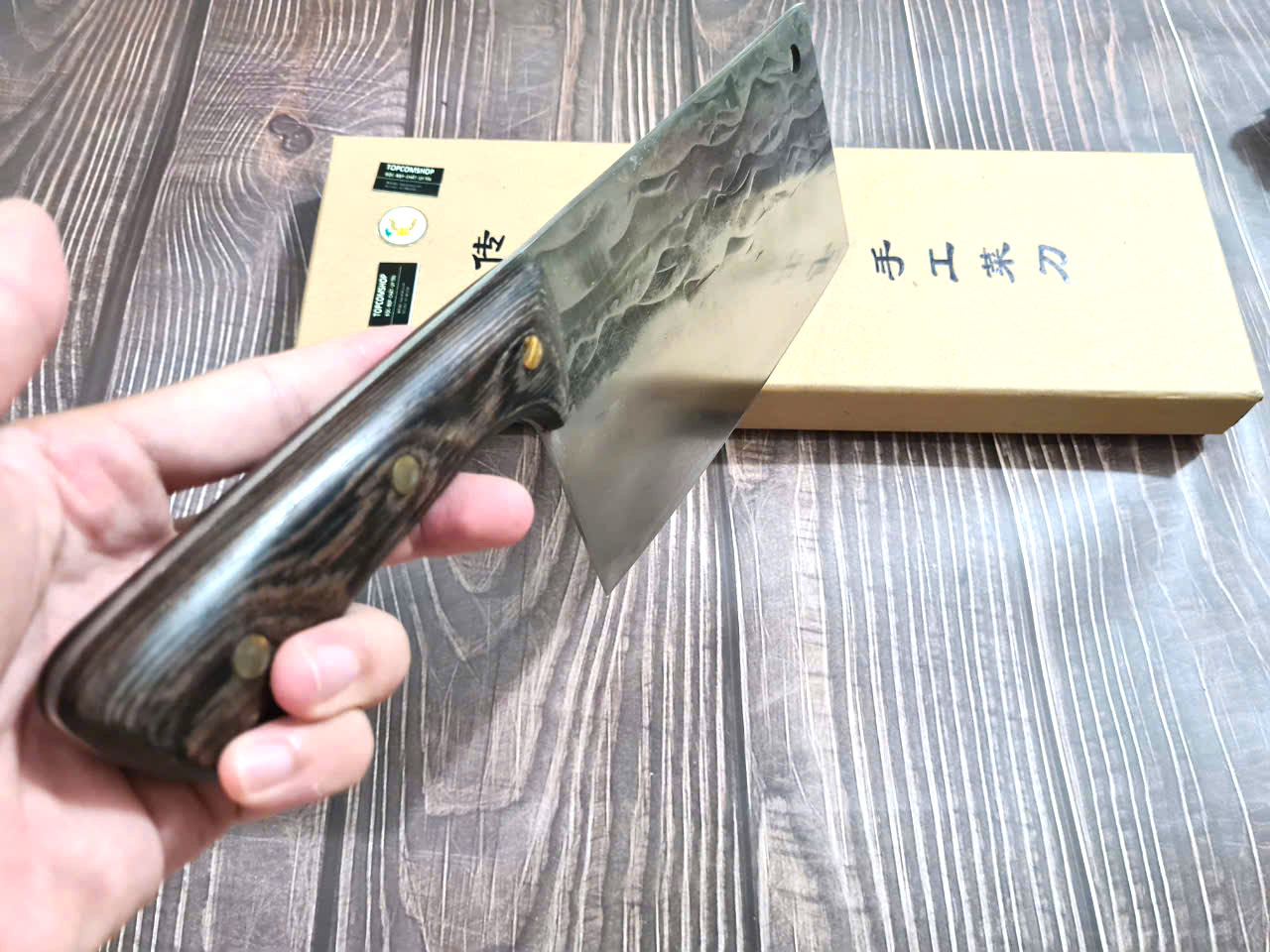 THÔNG TIN SẢN PHẨM ều dài TỔNG: 32cm Chiều dài lưỡi: 20cm Chiều rộng lưỡi: 12cm, Độ dày lưỡi: 2.5mm Trọng lượng: 4.5 lạng chất liệu lưỡi : 5Cr15MOV (thép 5 crom 15 molypden vanadi) Chất liệu tay cầm: gỗ cánh gà