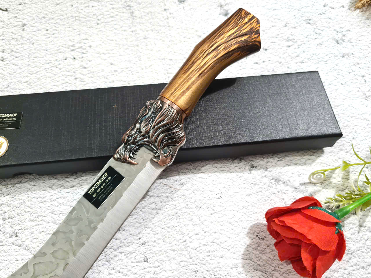 D SỐ 4 : TỔNG DÀI : 32cm, LƯỠI: 18cm,RỘNG : 4.5cm, dày: 3mm, NẶNG : 2.3 lạng, CHẤT liệu lưỡi: 4Cr13MOV (thép 4 crom 13 molypden vanadi).Chất liệu CÁN: nhựa abs xịn . khâu đầu rồng và chuôi bằng thép 4cr13