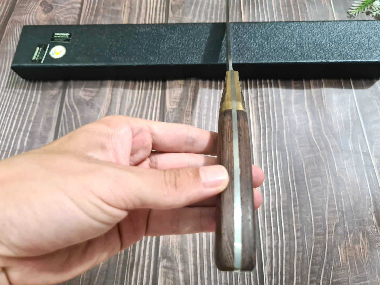 Dao Phúc Sen Dao Bầu 22 Cán Cẩm Khâu Đồng G10D - Kích thước: lưỡi: 20-22cm, cán: 13cm, rộng: 7,5cm, dầy: 1,5ly, trọng lượng: 300g - Chức năng: sử dụng chuyên thái lọc thịt ,cá,
