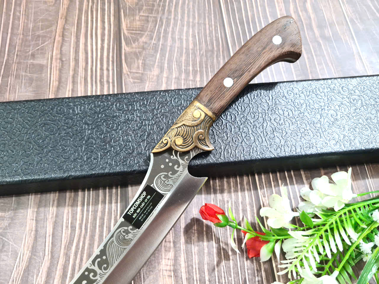 DAO PHÚC SEN - Dao Thái 22 cán mun khâu đồng đỏ - Chức năng: chuyên thái thịt và rau củ - Kích thước: Lưỡi: 22cm, cán: 12cm, rộng: 7,5cm, dầy: 1ly, trọng lượng: 280g