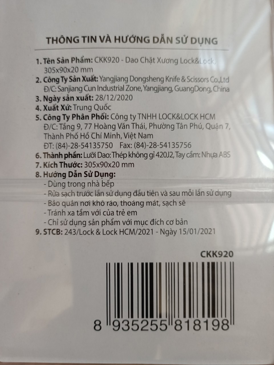 Mua tại TiktokTên sản phẩm: CKK920 - Dao chặt xương Lock&Lock 305x90x22 mm