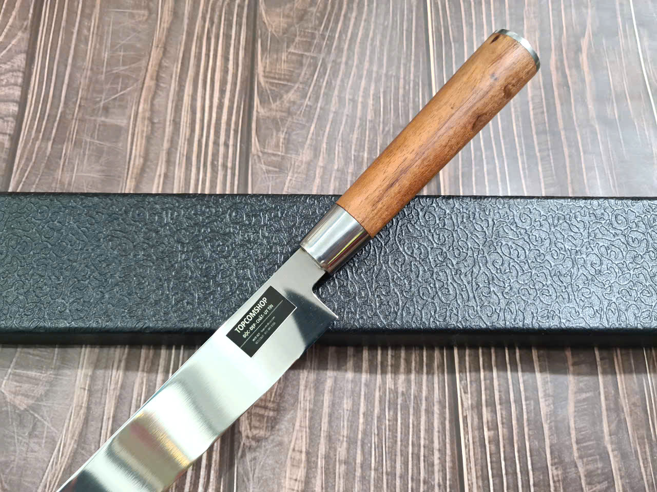 - Chức năng: chuyên lọc - thái cá thịt, rau củ. - Kích thước: Lưỡi: 21cm, cán: 12cm, rộng: 5cm, dầy: 2ly, trọng lượng: 200g - Cán : Gỗ mun , Khâu và chốt đồng