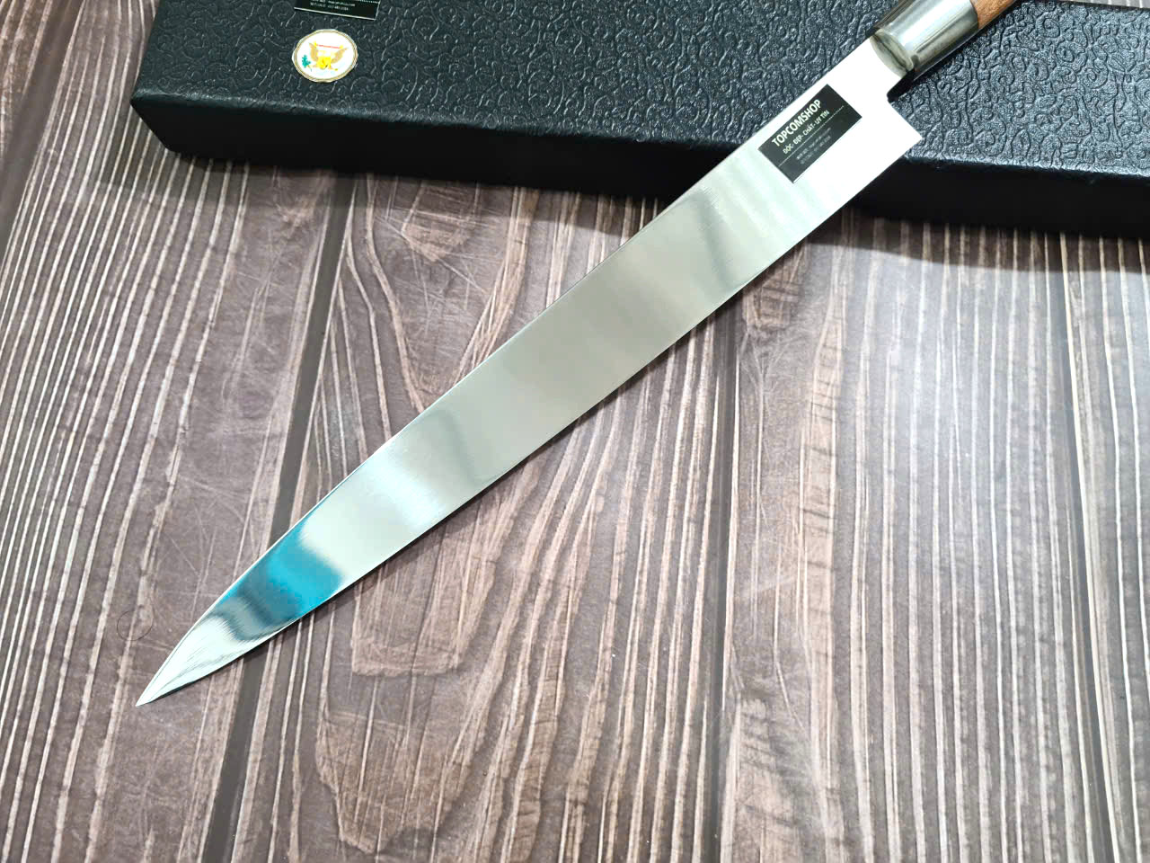 Dao Phúc Sen bản Takohiki - Kích thước: lưỡi: 24cm, cán: 12cm, rộng: 3.5cm, dầy: 2.5 ly, trọng lượng: 200g - Chức năng: sử dụng chuyên thái thịt ,cá, rau củ và các thực phẩm