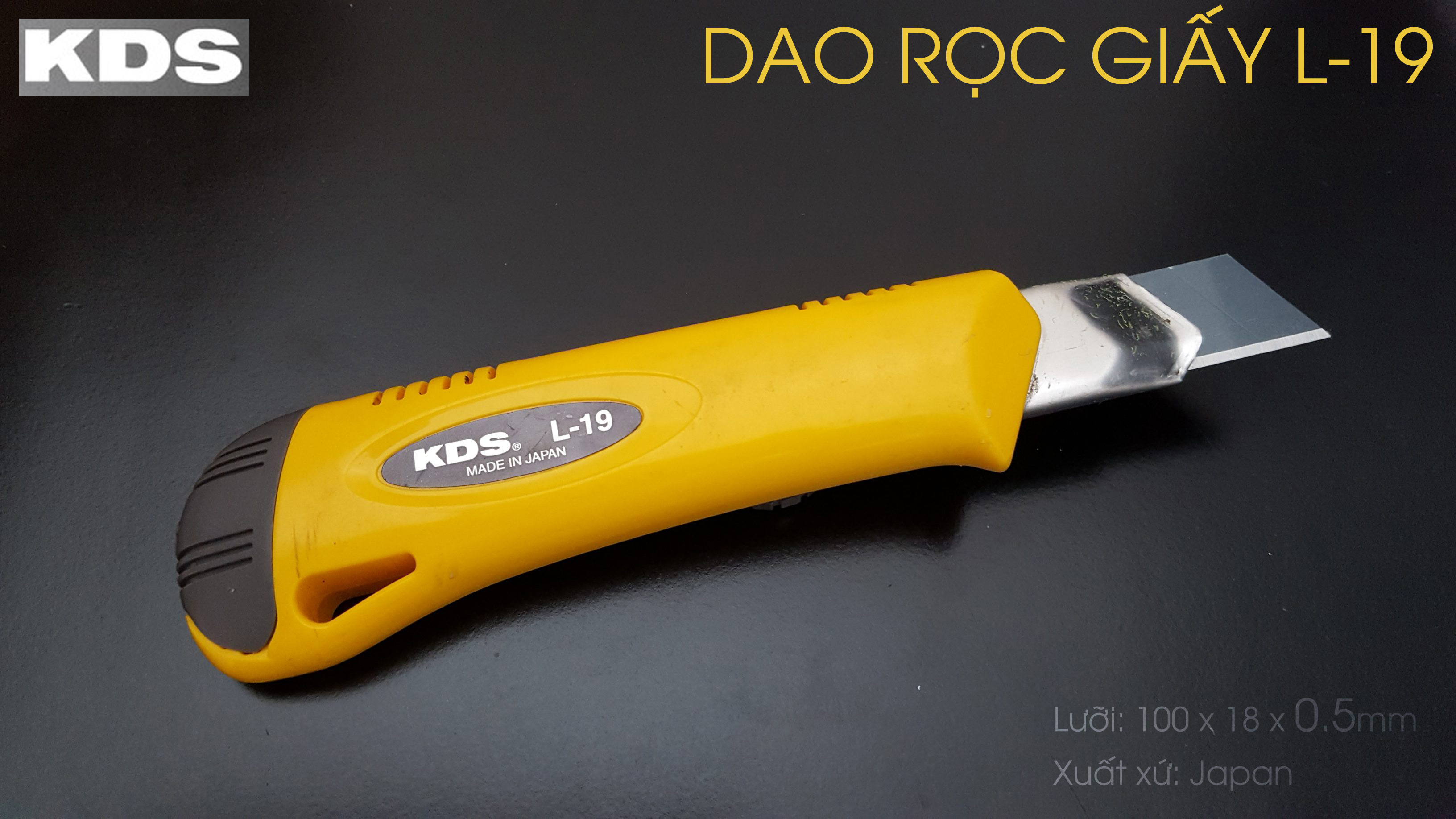 DAO RỌC GIẤY KHÓA XOAY KDS L-19 THÔNG SỐ KỸ THUẬT DAO RỌC GIẤY KDS L-19 : - Chất liệu: Inox, nhựa ABS - Kích thước: 16cm x 4cm x 2.5cm - Kích thước