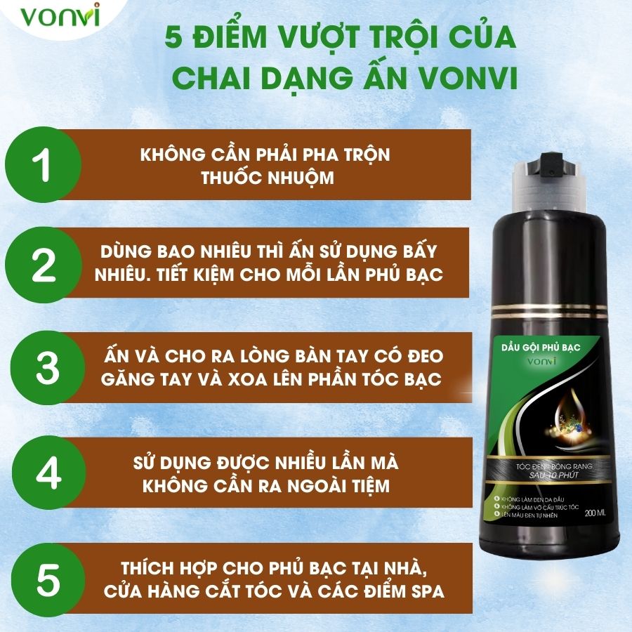 Dầu gội đen tóc VONVI tóc đen tự nhiên sau 10 phút tự phủ bạc dạng chai ấn 200 ml