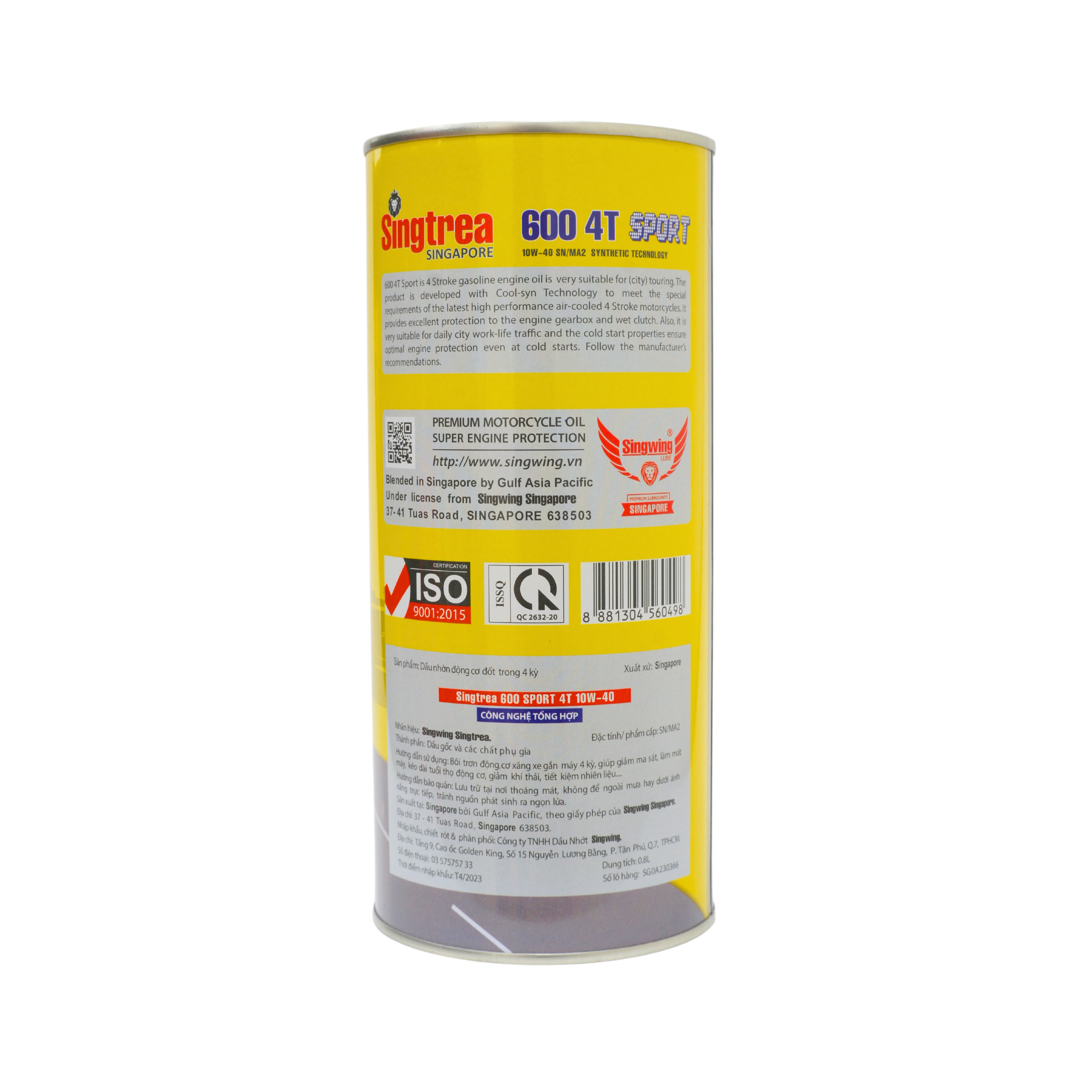 Mua tại TiktokDầu nhớt xe máy Singtrea 600 4T Sport 0.8L là dầu công nghệ tổng hợp nhớt động cơ 4 thì được thiết kế với Công nghệ Cool-Syn và phụ gia CLEAN-X độc quyền giúp làm mát máy đến 6%. Chất lượng luôn đáp ứng giữ độ nhớt khi vận hành liên tục trên cung đường dài. Thông số kỹ thuật: