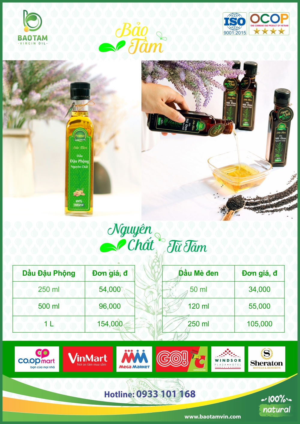 Dầu phộng Nguyên chất Bảo Tâm được sản xuất từ Đậu phộng sẻ, trồng tại vùng đồng bằng đất cát pha thịt ở Tam Kỳ và Thăng Bình của tỉnh Quảng Nam giúp dầu sạch hơn, thơm hơn, ngon hơn, màu vàng đẹp hơn