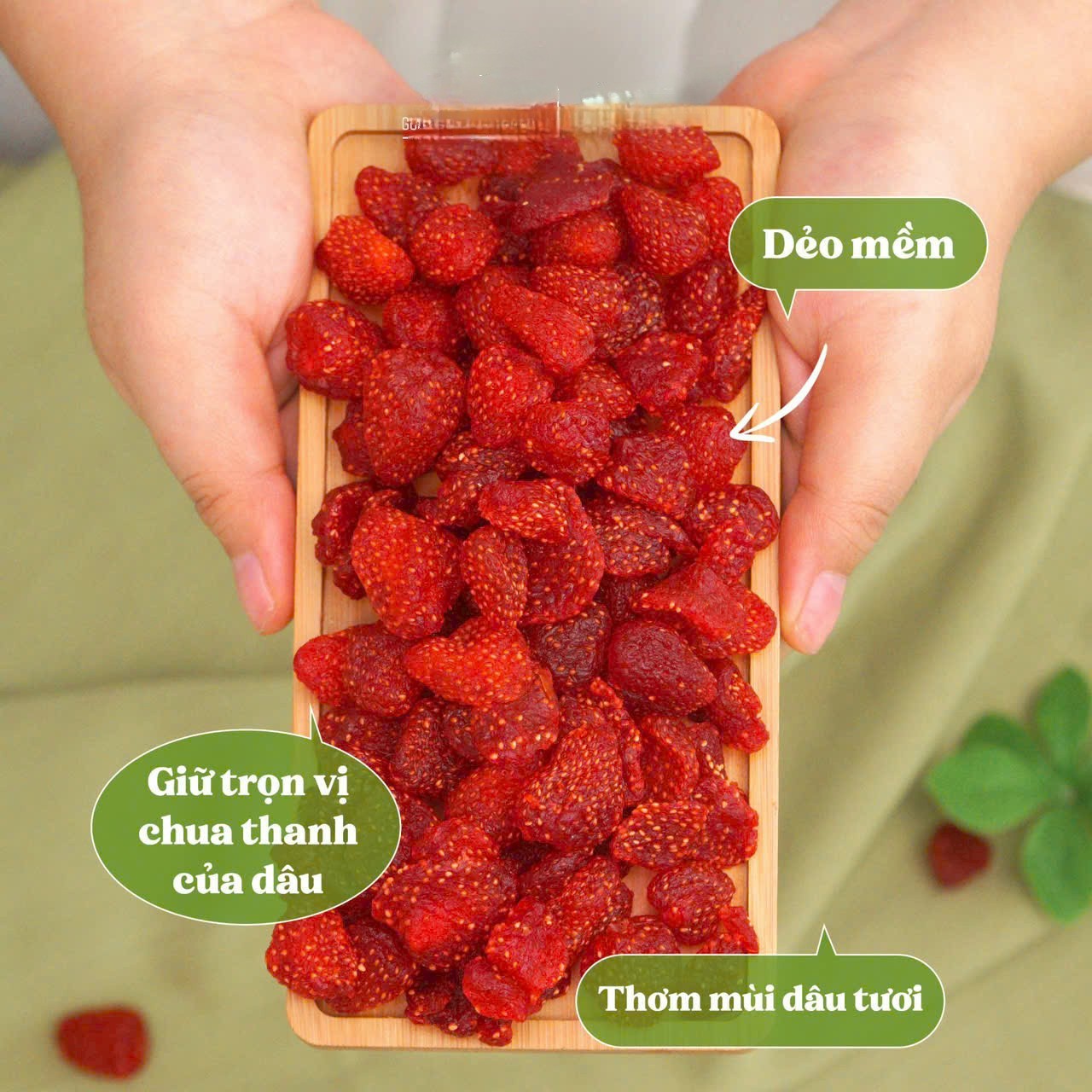 Bổ sung vào các món ăn: Dâu sấy dẻo có thể được bổ sung vào các món ăn khác để tăng cường hương vị và giá trị dinh dưỡng, như làm bánh, món tráng miệng