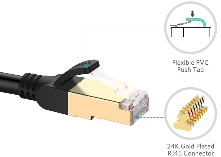 1. Data transfer rate: 10G 2. Frequency: 600MHz 3. 4 shielded twisted pair (U/FTP) of copper wires 4. Pure Copper Core