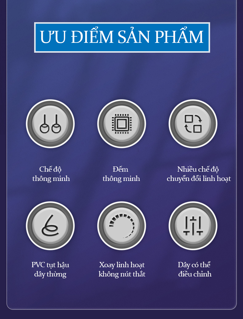 - Được thiết kế với bộ đếm calo và bộ đếm số vòng nhảy chính xác, dễ dàng thiết lập.