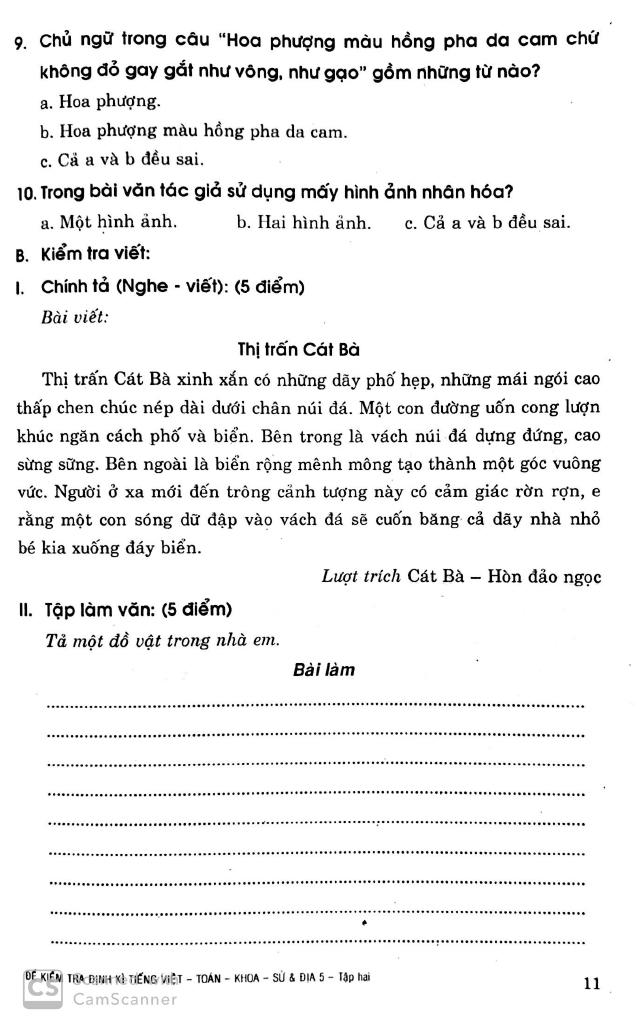 ✨Đề Kiểm Tra Định Kì Tiếng Việt - Toán - Khoa Học- Lịch Sử - Địa Lí 5 - Tập 2