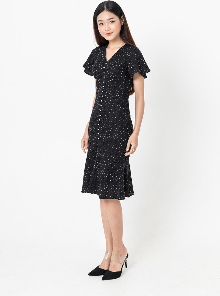 ✨De Leah - Đầm Ôm Đuôi Cá Cúc Trai - Đen