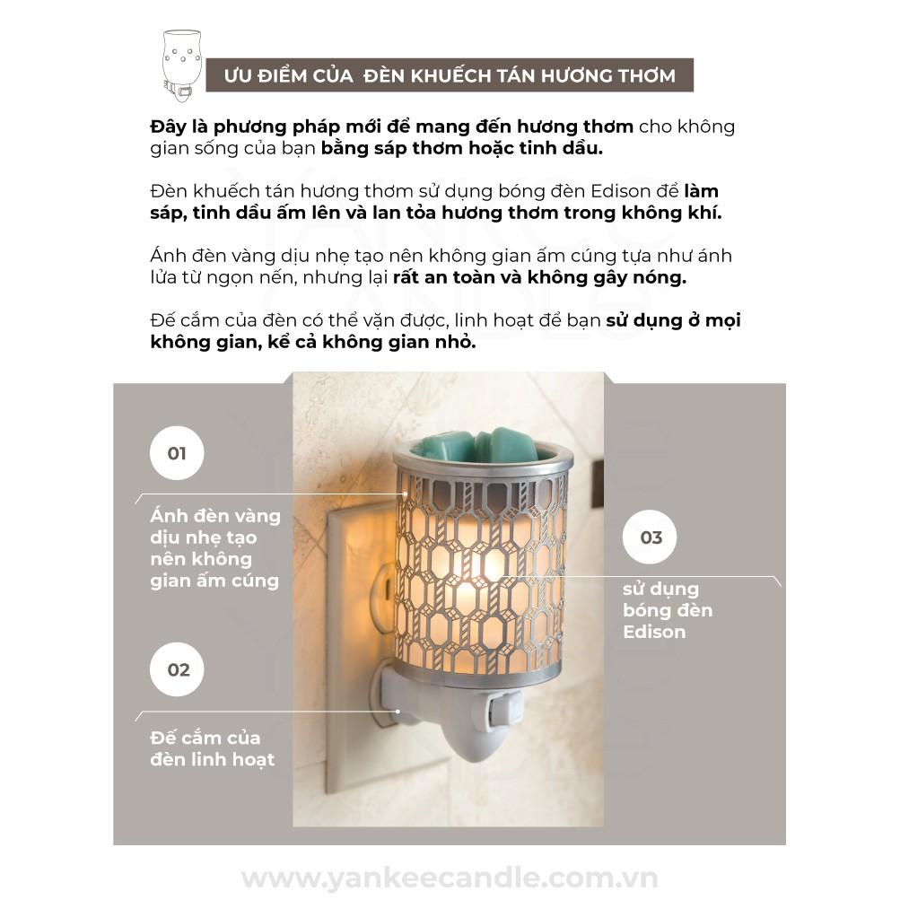 Đèn khuếch tán hương thơm sử dụng bóng đèn Edison để làm sáp ấm lên và tan chảy trong đĩa, từ đó lan tỏa hương thơm trong không khí. HƯỚNG DẪN SỬ DỤNG