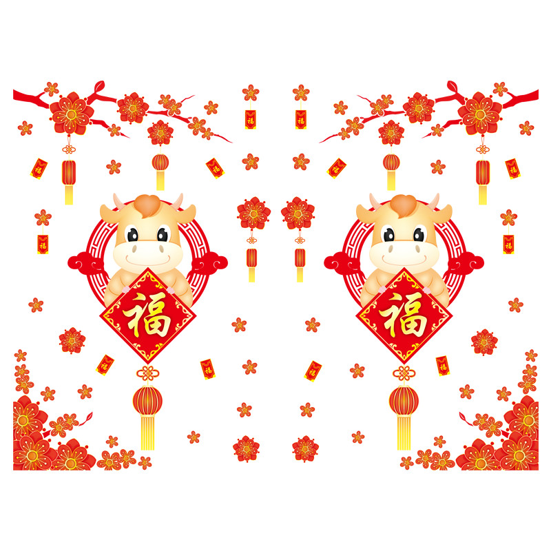 Mua tại TiktokDecal dán tường decal trang trí tết Mẫu Lồng Đèn Đỏ và con trâu AMJ921