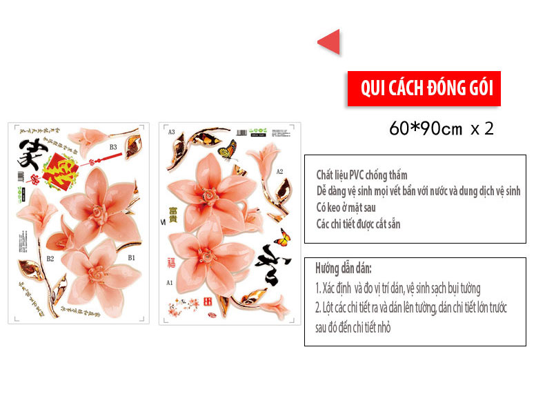 Đặc điểm kỹ thuật :Decal dán tường hoa XL8195-flowerdecal Không độc hại, bảo vệ môi trường Chống thấm nước, sử dụng vào tháo dỡ một cách dễ dàng Bạn có thể sử dụng để
