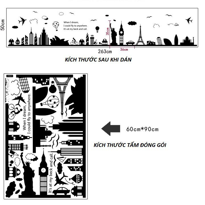 Hướng dẫn cách dán - Decal là những chi tiết ghép lại thành 1 bức tranh,nền là tường nhà bạn - Khác với giấy dán tường là dán kín phòng, decal dán tường là các