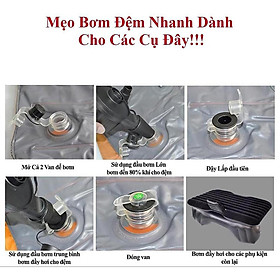 - Bộ sản phẩm gồm: bơm điện 12v, nệm hơi, 2 gối, hộp keo + miếng vá, túi.