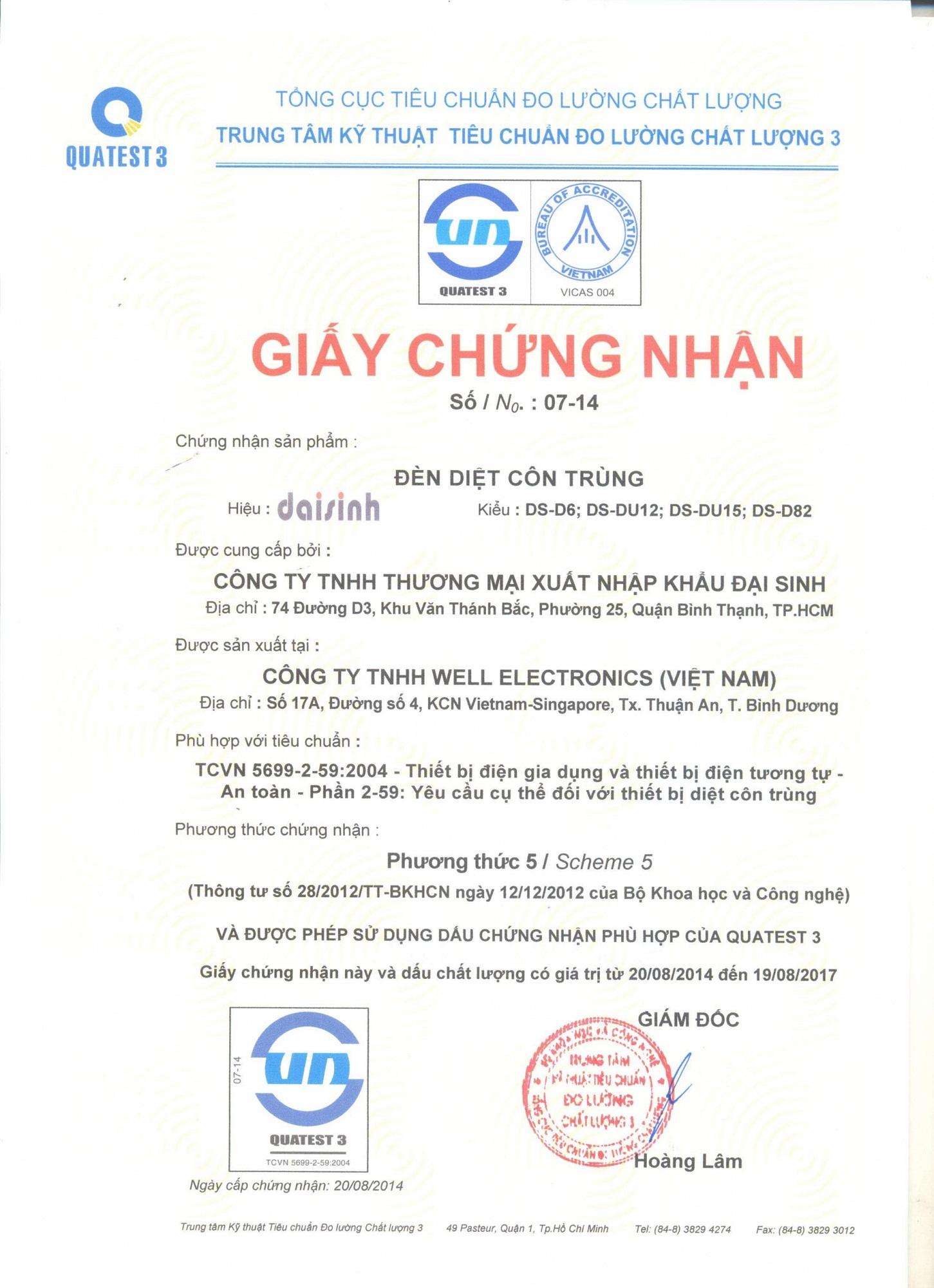 Đèn diệt muỗi bắt côn trùng Đại Sinh DS-D62 : ngủ không cần mắc màn