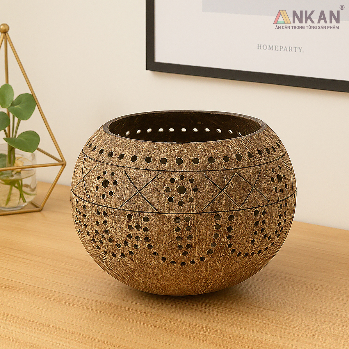 Bạn đang tìm một sản phẩm decor nhỏ gọn nhưng đủ tinh tế để tạo không gian thư giãn? Chiếc đèn gáo dừa khắc hoa văn hoa cúc của ANKAN là lựa chọn hoàn hảo