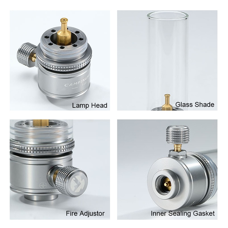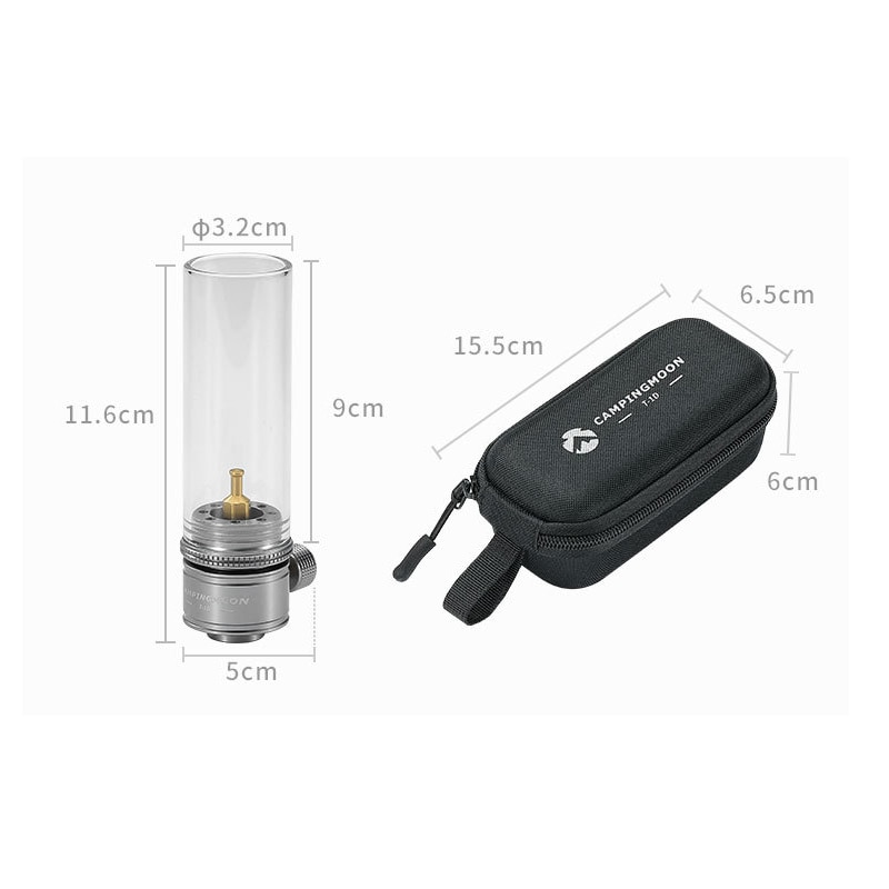 - Chất liệu: Kính thủy tinh + Đồng + Hợp kim nhôm Đèn gas dã ngoại Campingmoon T-1D với kết cấu hợp kim nhôm, đồng và kính chắc chắn. Chụp đèn bằng thủy tinh cường lực, nhẹ và bền. Kích thước nhỏ gọn và siêu nhẹ, dễ dàng và thuận tiện để mang theo. Thuận tiện để điều chỉnh độ sáng phù hợp. Với túi bảo quản được làm bằng xốp chống sốc, giúp đèn không bị vỡ. Thích hợp cho Hiking, du lịch bụi, cắm trại, dã ngoại,
