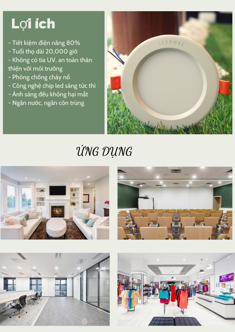 Mua tại Tiktok1, Về Thương hiệu đèn LEDGOES Là thương hiệu đèn đã được đăng ký và bảo hộ độc quyền tại Việt Nam của Công ty CP Giải pháp chiếu sáng toàn diện Ánh Sao. Với dây chuyền sản xuất hiện đại, đảm bảo các tiêu chuẩn về chiếu sáng, chế độ bảo hành chăm sóc tận tâm, quý khách có thể hoàn hoàn yên tâm khi sử dụng sản phẩm. 2, Thông số kỹ thuật: