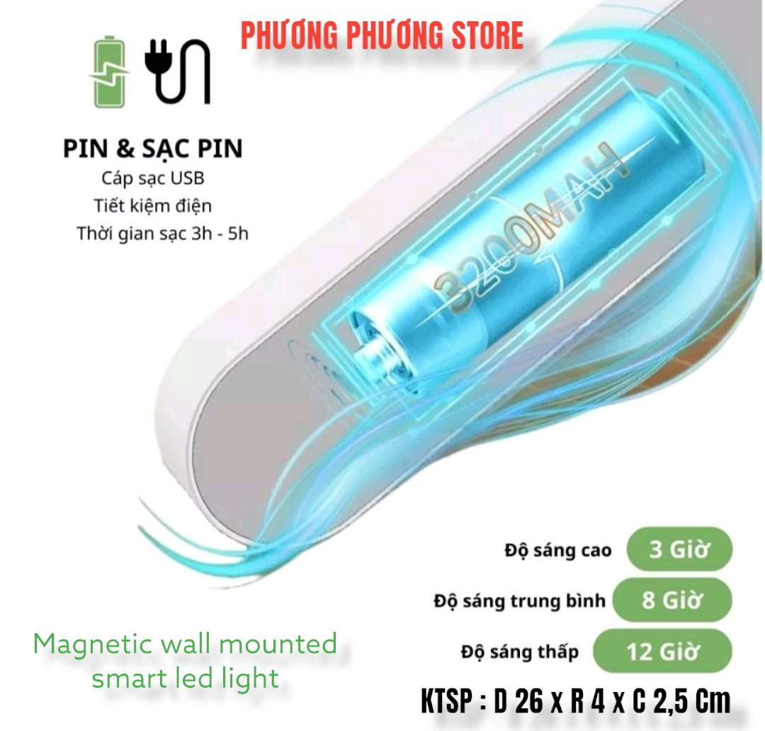 Đèn học gắn tường, gắn tủ bàn học bảo vệ mắt tích điện sạc USB cảm ứng 3 chế độ sáng cao cấp 28cm