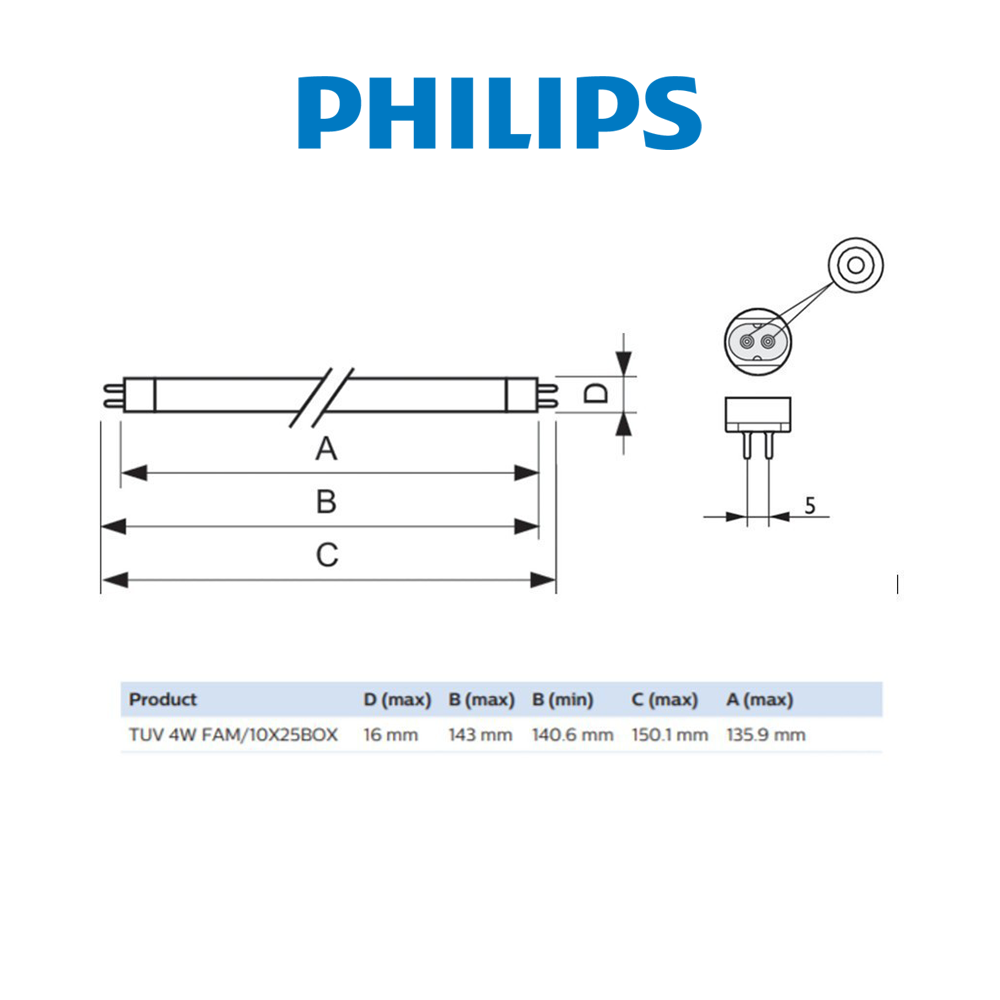 Philips có hơn 35 năm kinh nghiệm trong lĩnh vực chiếu sáng UV-C. ĐÈN DIỆT KHUẨN TUV 4W là loại đèn UVC (diệt khuẩn) hai đầu mảnh được sử dụng trong các đơn vị khử