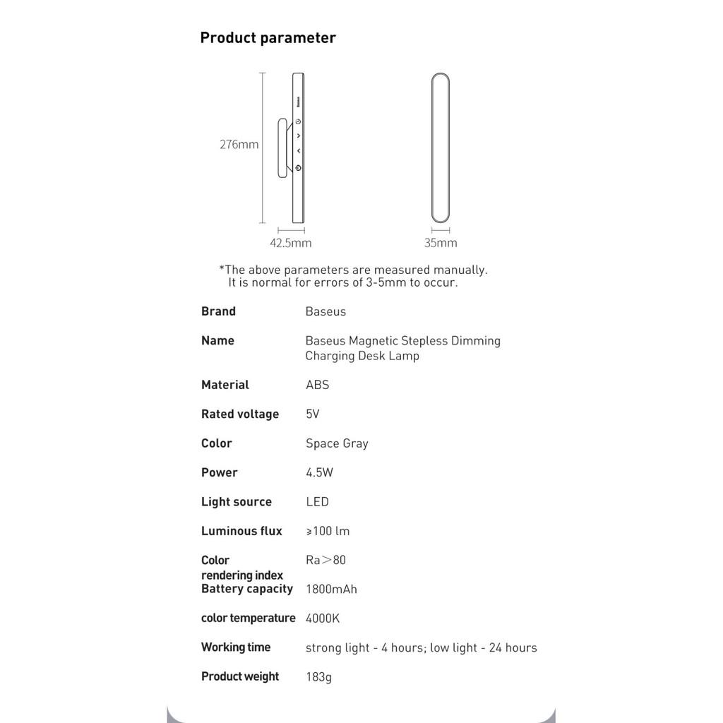 ✨Đèn treo đế hít nam châm Baseus Magnetic Stepless Dimming Charging Desk Lamp (1800mAh ,4000K, 24h sử dụng liên tục)- hàng chính hãng.