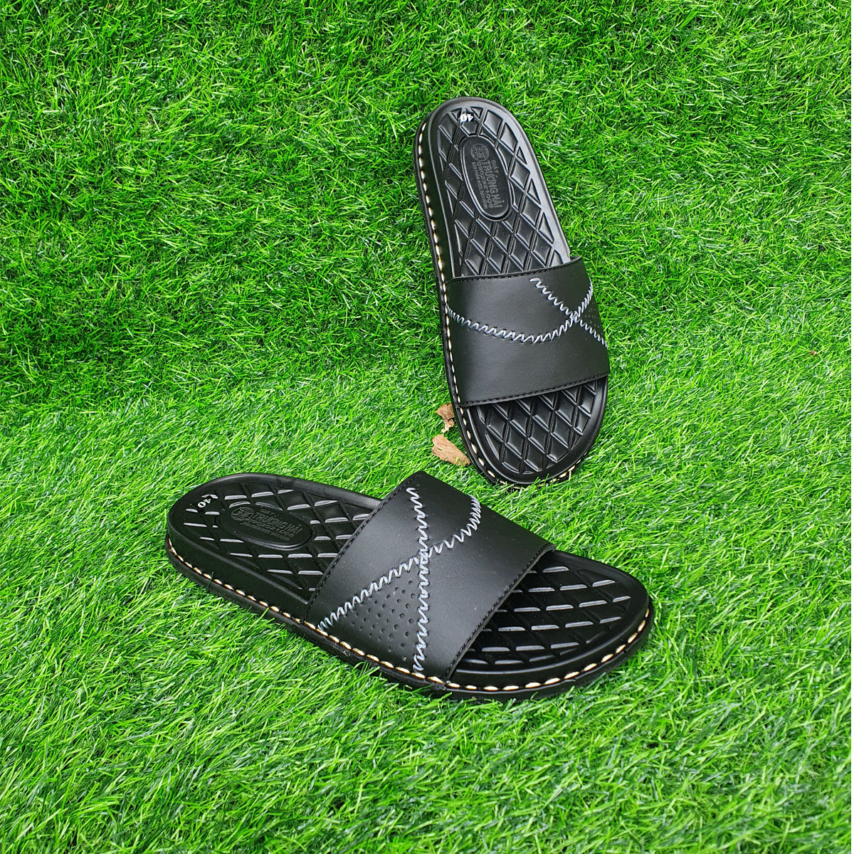 Dép Da Nam - Lịch Lãm & Thoải Mái Mỗi Ngày - Chất liệu cao cấp: Sử dụng da tổng hợp chất lượng, mềm mại, bền bỉ theo thời gian, mang lại cảm giác êm ái và thoáng khí cho bàn chân. - Thiết kế sang trọng: Tông màu đen lịch lãm, kết hợp với đường chỉ may tinh tế và logo kim loại nổi bật – tôn lên vẻ nam tính, trưởng thành. - Đế chống trượt: Đế EVA siêu nhẹ, độ đàn hồi tốt, kết hợp vân đế tăng độ ma sát – an toàn khi di chuyển trên nhiều bề mặt. - Form ôm chân: Thiết kế bản quai ngang rộng, ôm gọn bàn chân nhưng không gây bí bách, dễ xỏ vào – thích hợp cho người trung niên và người lớn tuổi. - Ứng dụng đa năng: Phù hợp sử dụng trong nhà, đi dạo phố, đến văn phòng hoặc các dịp gặp gỡ thân mật. Lựa chọn tuyệt vời cho quý ông yêu thích sự thoải mái, đơn giản nhưng vẫn giữ được nét tinh tế trong từng bước chân.