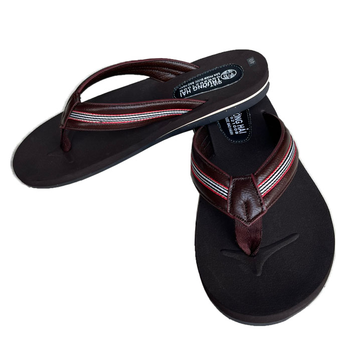 Dép Nam Quai Ngang Da Bò Bản Lớn Màu Nâu Trường Hải DN046