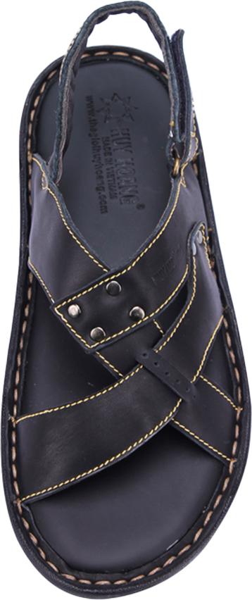 Dép nam Huy hoàng da bò quai hậu màu đen 7146
