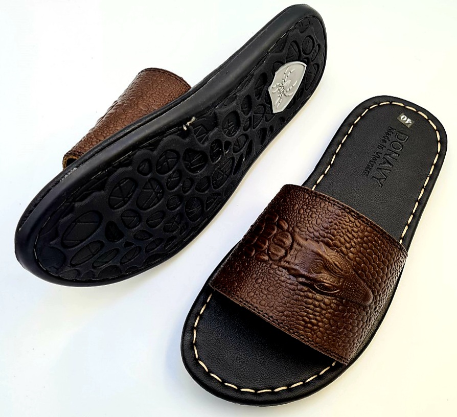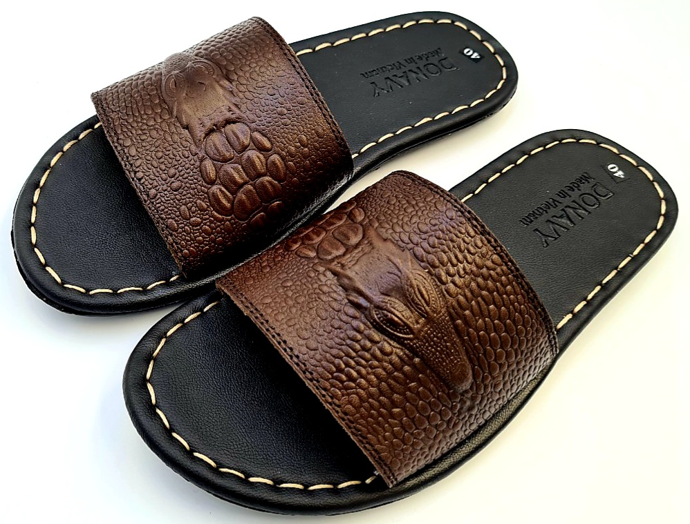 Mua tại TiktokDép Quai Ngang Nam Da Bò Thật 100%,DONAVY Kiểu Đầu Cá Sấu Đi Rất Nhẹ Và Êm DCSDN Chất liệu: Da bò thật 100% da bò tự nhiên Đế cao su tốt đi siêu êm, chống chơn, trượt. Da được may vào đế cẩn thận, đẹp bao đi nước Hàng đảm bảo giống hình