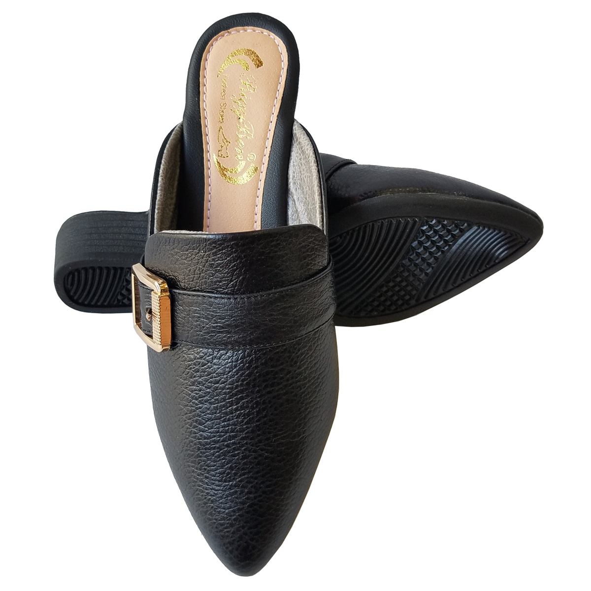 Giày Sục Nữ Giày Cao Gót 3Cm Da Bò Thật Siêu Mềm Cao Cấp Evelynv 3P2916 (Đen)