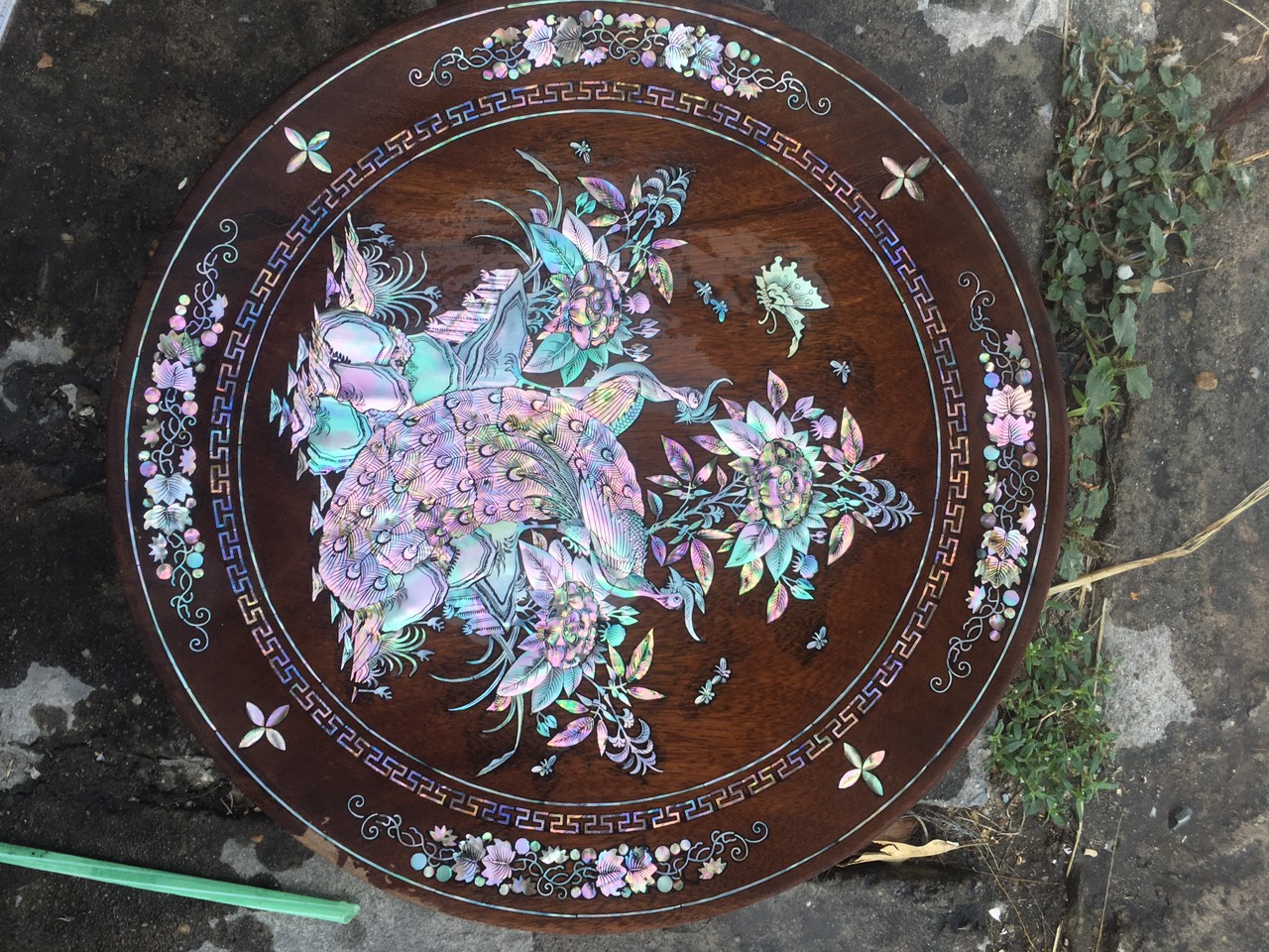 Đĩa gỗ gụ khảm ốc đỏ Singapore 😘phu thê viên mã 😘😘