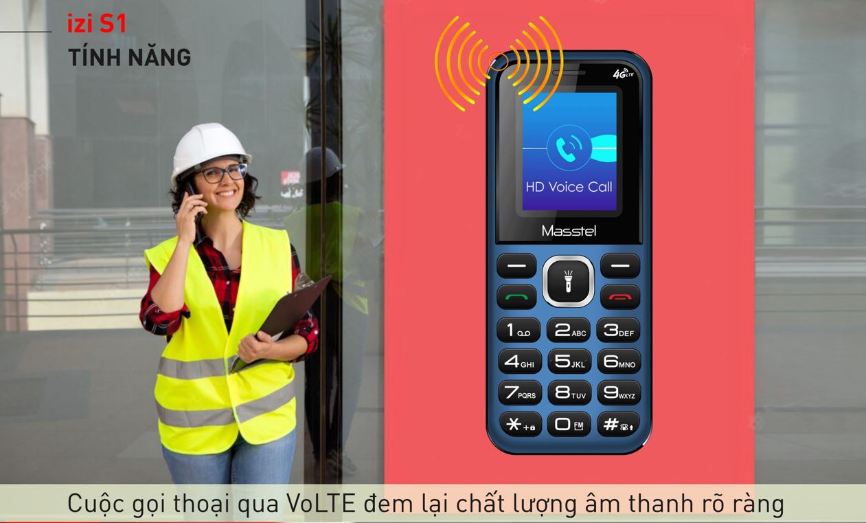 Masstel izi S1 được tích hợp công nghệ mạng di động 4G mang đến trải nghiệm ưu việt với chất lượng đàm thoại xuất sắc, âm lượng lớn, rõ ràng cho cả người gọi và người nghe.