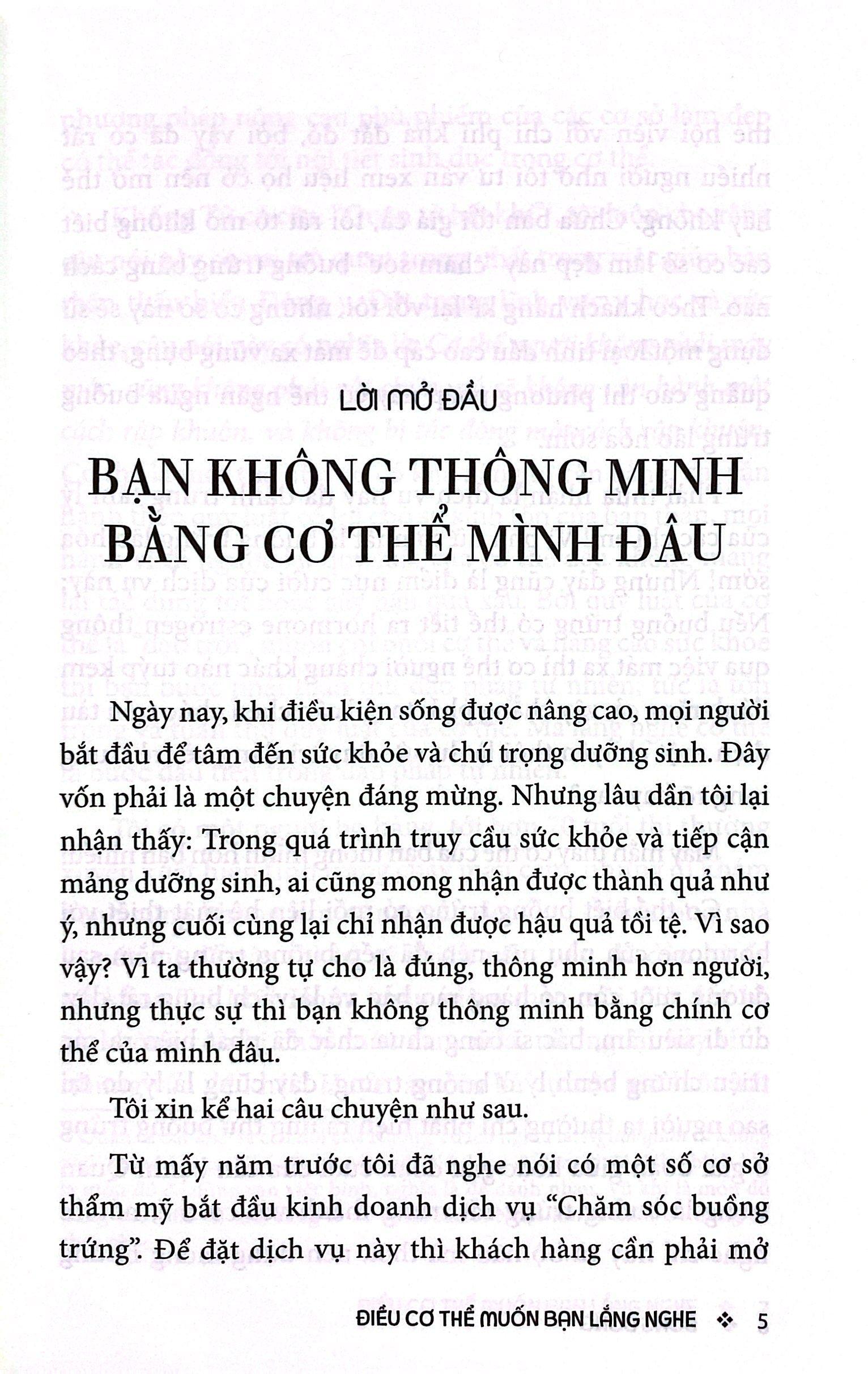 Cuốn sách này sẽ giúp bạn hiểu được ĐIỀU CƠ THỂ MUỐN BẠN LẮNG NGHE để từ đó giảm bớt nỗi sợ hãi với bệnh tật, tránh đều trị quá liều và hạn chế nguy cơ khiến bệnh từ nhẹ trở nên nặng hơn.