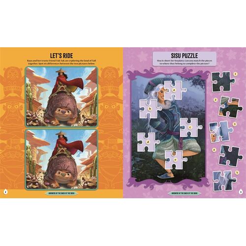 Complete activities, solve puzzles, and have fun with stickers in this amazing activity book featuring characters from the new ['disney'] film, Raya and the Last Dragon.