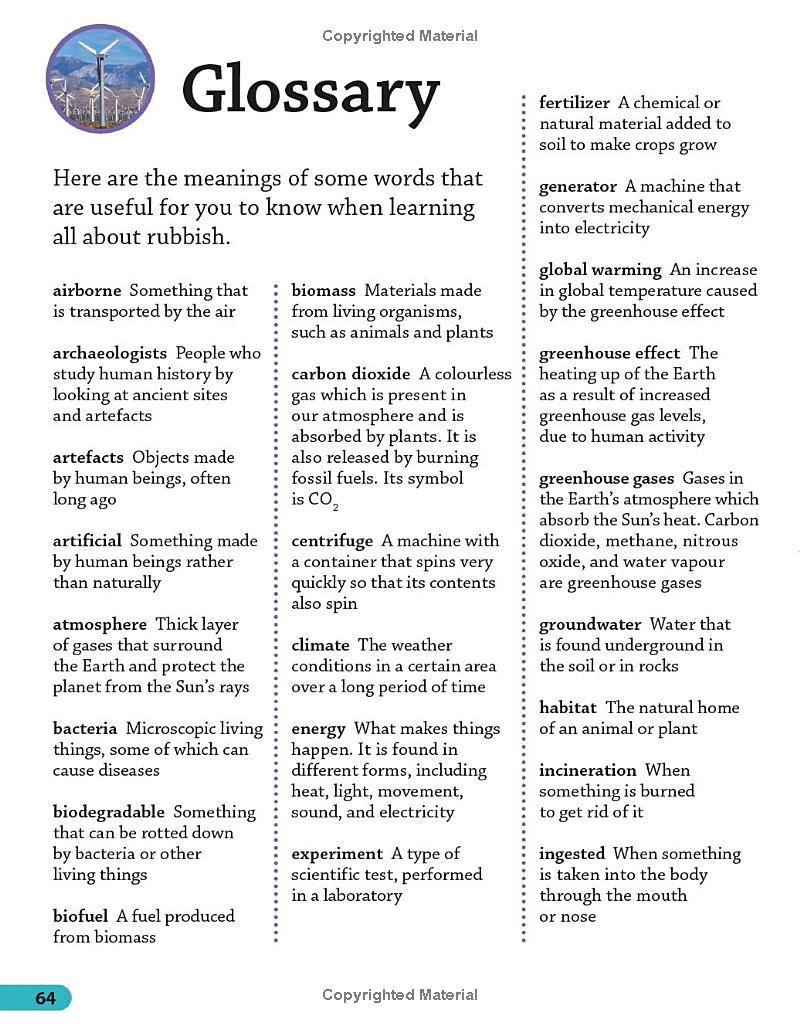 Waste management is an issue humans have encountered throughout history. We can learn a lot about the past by looking at rubbish that was buried in early rubbish dumps, called middens. This book covers the different types of garbage, how it is dealt with, and the problems that occur because of rubbish.