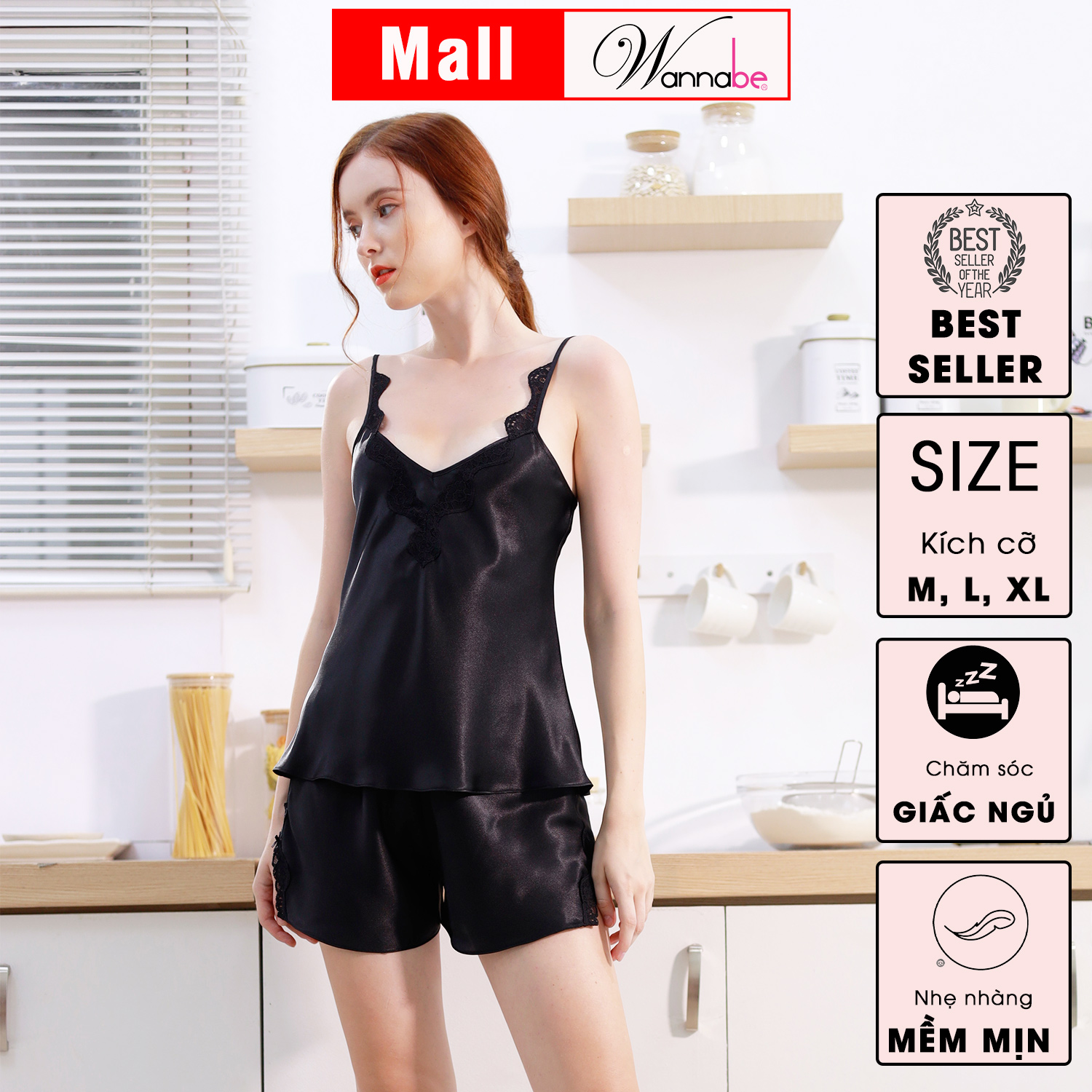 Đồ bộ mặc phi lụa cao cấp WANNABE BSS38 bộ sọt 2 dây cúp 2 lớp tạo độ phồng cúp ngực nữ tính trẻ trung năng động Đồ bộ mặc nhà phi lụa cao cấp
