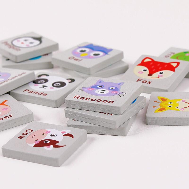 - 1 bộ gồm 1 bảng gỗ + 80 thẻ in hình các con vật khác nhau