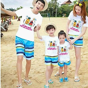 Đồ đi biển dành cho gia đình quần dừa áo in họa tiết Fun in the Sun xinh xắn chất thun đẹp (giá 1 bộ gồm 1quần +1áo) - Gia đình bạn muốn lưu lại