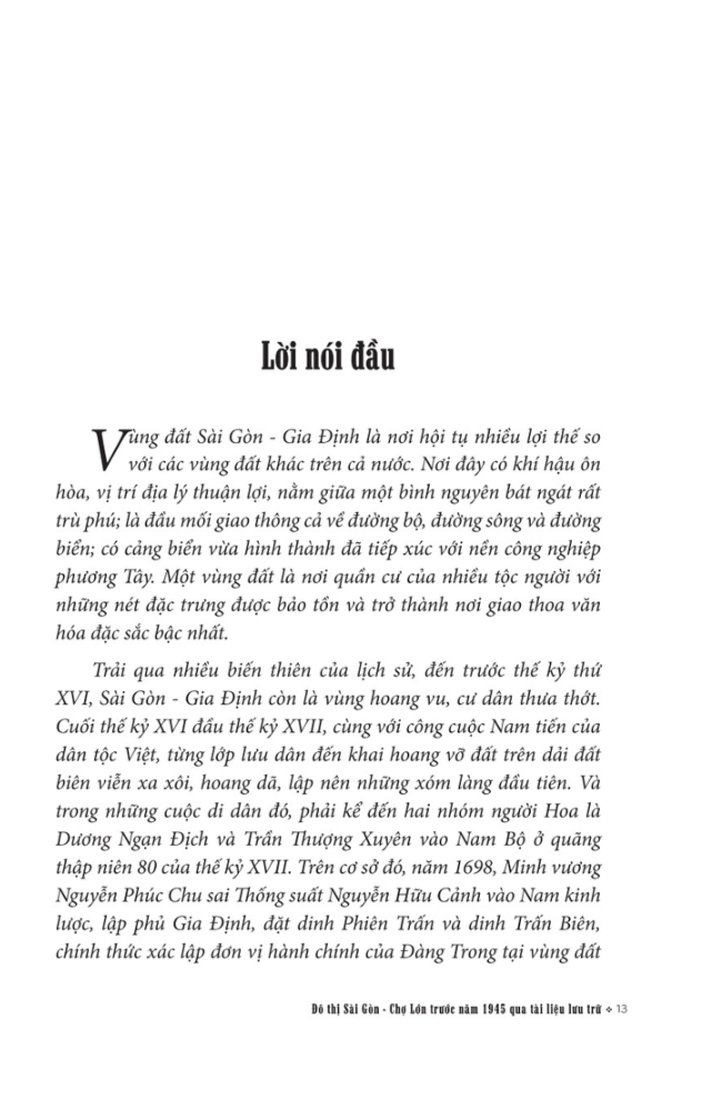 Cuốn sách Đô thị Sài Gòn - Chợ Lớn trước năm 1945 qua tài liệu lưu trữ, ngoài phần mở đầu và kết luận, được bố cục thành 2 phần với 4 chương.