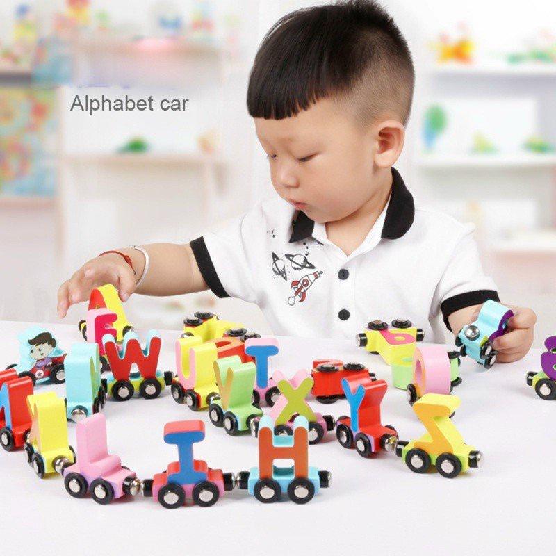 Đoàn tàu nam châm chữ và số, đồ chơi giáo dục giúp bé học chữ cái và số đế