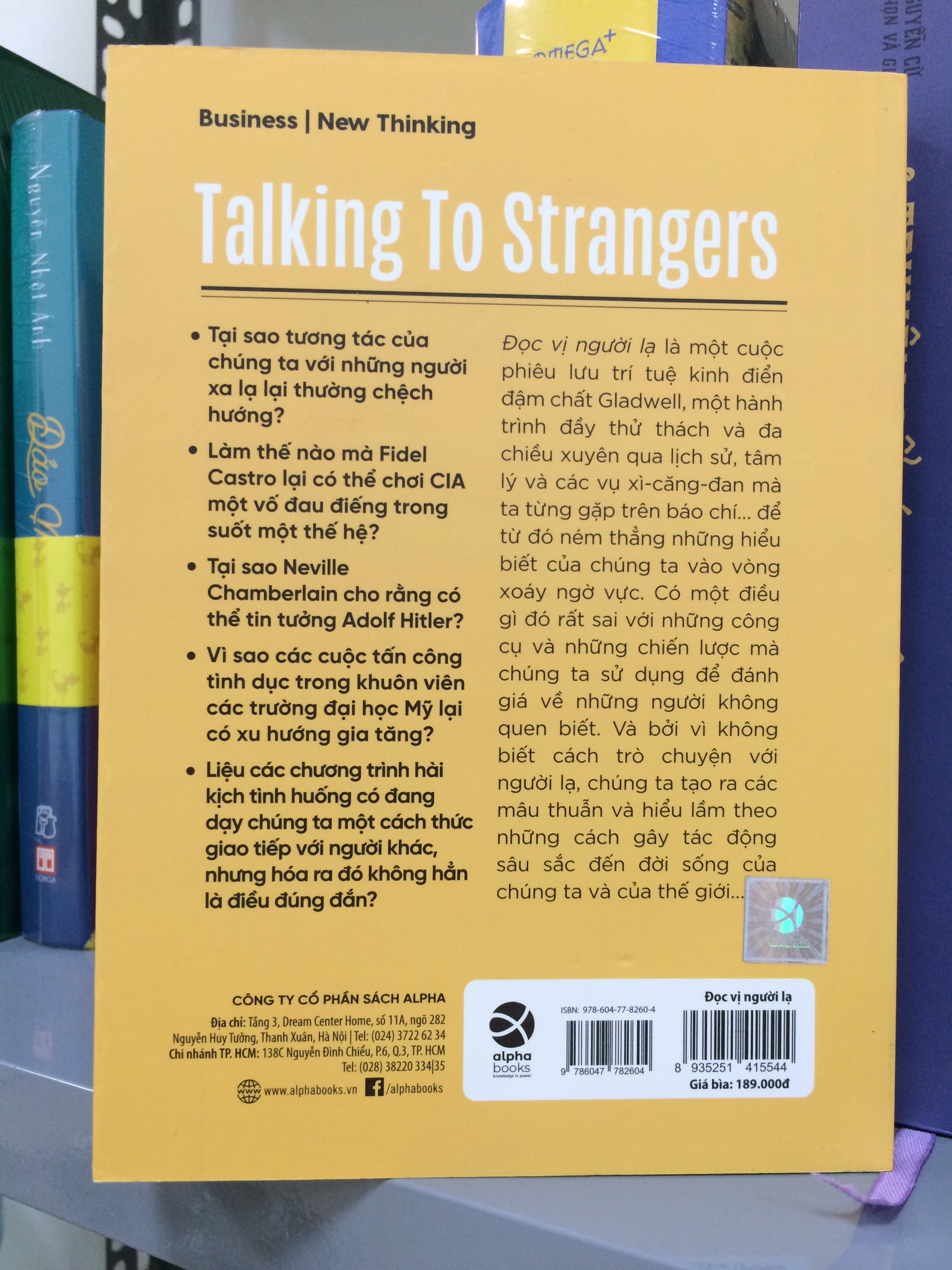 Có một điều gì đó rất sai, Gladwell lập luận, với những công cụ và những chiến lược mà chúng ta sử dụng để đánh giá về những người chúng ta không biết. Và bởi vì chúng ta không biết cách trò chuyện với những người lạ, chúng ta mời gọi các mâu thuẫn và hiểu lầm theo những cách gây tác động sâu sắc đến đời sống của chúng ta và của thế giới. Trong cuốn sách đầu tiên của mình kể từ sau cuốn sách bán chạy số 1 David & Goliath, Malcolm Gladwell lại viết tiếp một cuốn sách hướng dẫn nghẹt thở trong những thời đại hỗn mang.