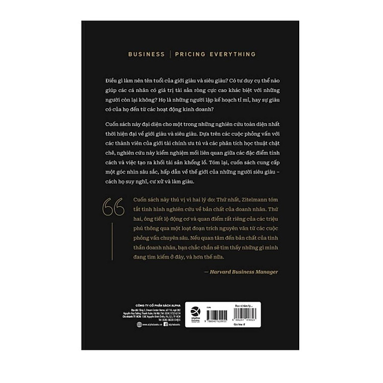 chúng biết đến của những triệu phú và triệu triệu phú. Zitelmann đã thực hiện các cuộc phỏng vấn chuyên sâu với 45 triệu phú và tỉ phú… và thật vô cùng thú vị khi được đọc về cách cha mẹ họ đối phó với chủ đề tiền bạc” - Tạp chí FOCUS MONEY-Online “Cuốn sách của Zitelmann có tầm quan trọng lớn vì nó cung cấp lời giải thích cho sự thành công của nền kinh tế thị trường và sự thịnh vượng của xã hội chúng ta. Nó tập trung vào doanh nhân… Trên thực tế, cuốn sách của Zitelmann xứng đáng là một văn bản tiêu chuẩn cho các Bộ trưởng Tài chính và Kinh tế hiện tại và tương lai. Tất cả mọi người có khát vọng kinh doanh nên đọc cuốn sách này.” – Huffington Post