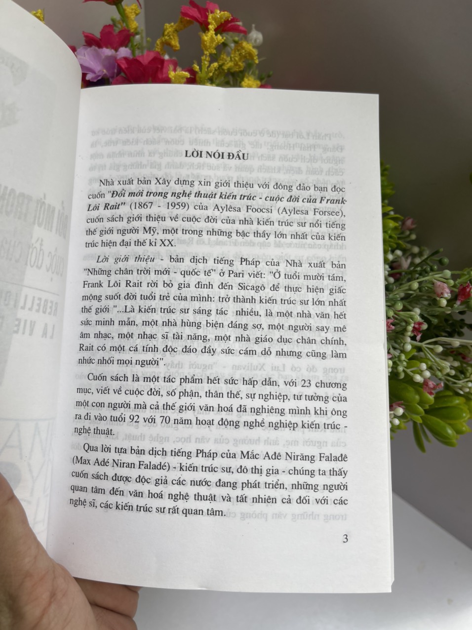 ĐỔI MỚI TRONG NGHỆ THUẬT KIẾN TRÚC CUỘC ĐỜI CỦA FRANK LLOYD WRIGHT Tác giả: Aylesa Forsee Người dịch: Đặng Thái Hoàng Nhà phát hành: NXB Xây Dựng Nhà xuất bản: NXB Xây Dựng Hình thức: Bìa mềm,