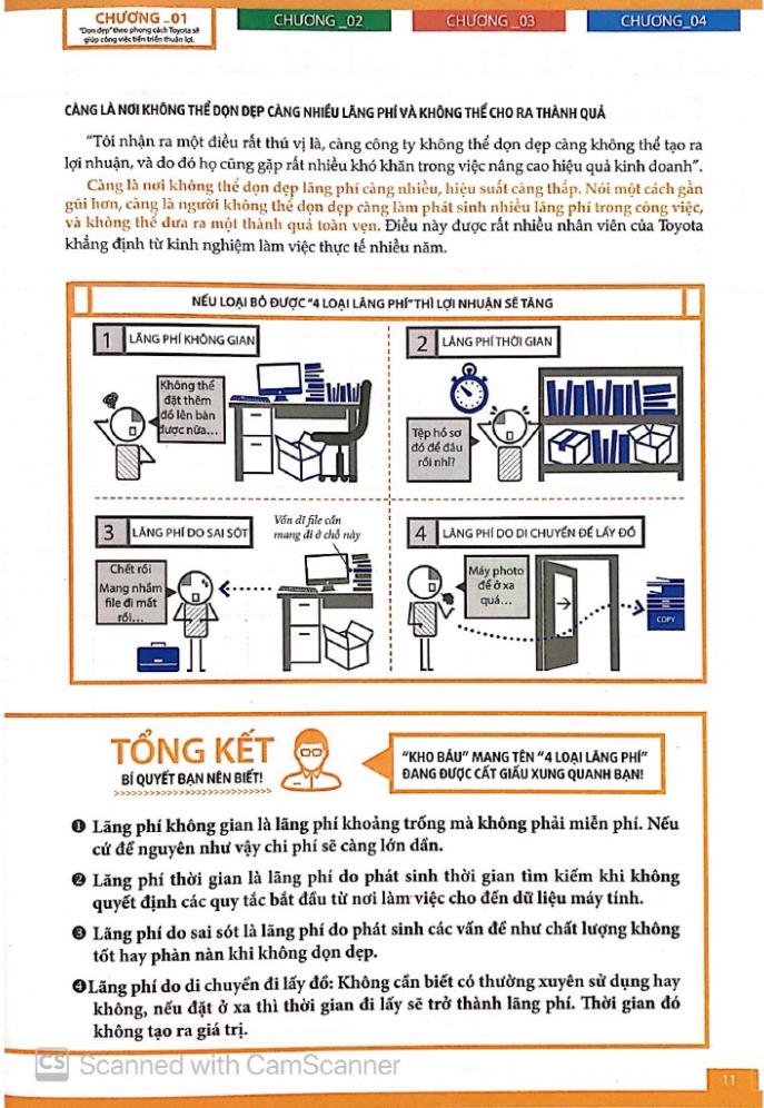 Cuốn sách này tổng hợp kinh nghiệm, trí tuệ của những chuyên gia đào tạo thuộc công ty OJT Solutions (tỉnh Aichi, Nhật Bản) là những người đã từng có kinh nghiệm làm việc tại bộ phận sản xuất và phát triển sản phẩm của Toyota từ những năm 1960 cho tới nay. Những chuyên gia đào tạo đang tiến hành tư vấn hỗ trợ nâng cao hiệu quả kinh doanh và đào tạo nguồn nhân lực cho nhiều công ty bằng cách áp dụng những kinh nghiệm và cách suy nghĩ được bồi đắp nhiều năm tại Toyota. Những nội dung được giới thiệu trong cuốn sách này cũng bao gồm một phần cách nhìn nhận vấn đề liên quan tới công xưởng của Toyota và cả “hiện trường” của những công ty mà các chuyên gia đào tạo đã tư vấn. Thông qua phương pháp dọn dẹp theo phương thức Toyota, chúng tôi hy vọng các bạn có thể nâng cao hiệu suất cho công việc và nơi làm việc bằng cách tạo ra môi trường làm việc không lãng phí, không căng thẳng. Đây cũng là điều mà đội ngũ chuyên gia đào tạo chúng tôi mong muốn hơn tất cả.
