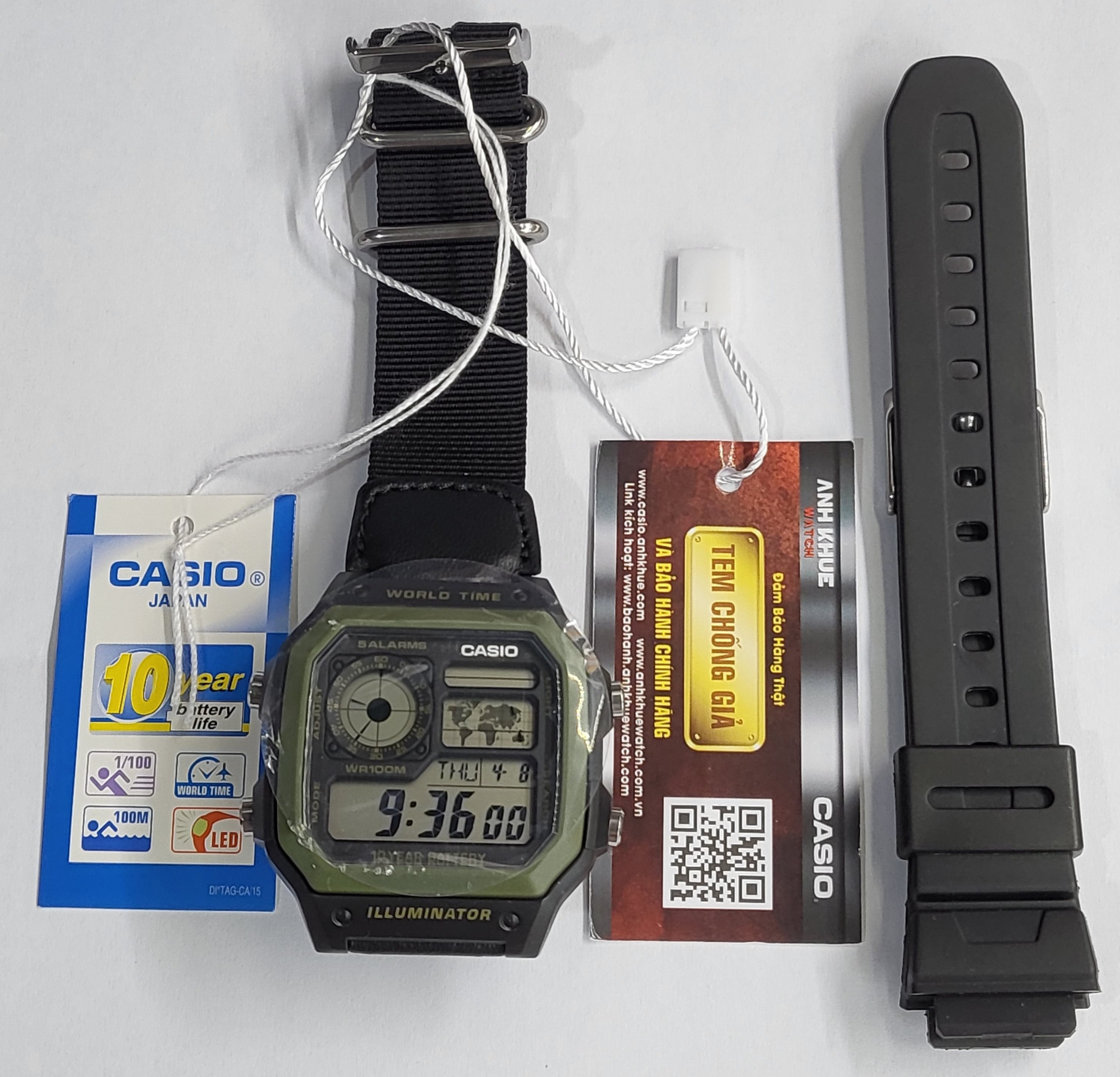 Video thực tế đồng hồ Casio Điện Tử Nam Dây Vải Xanh Lá AE-1200WHB-3B trực tiếp tại Bello